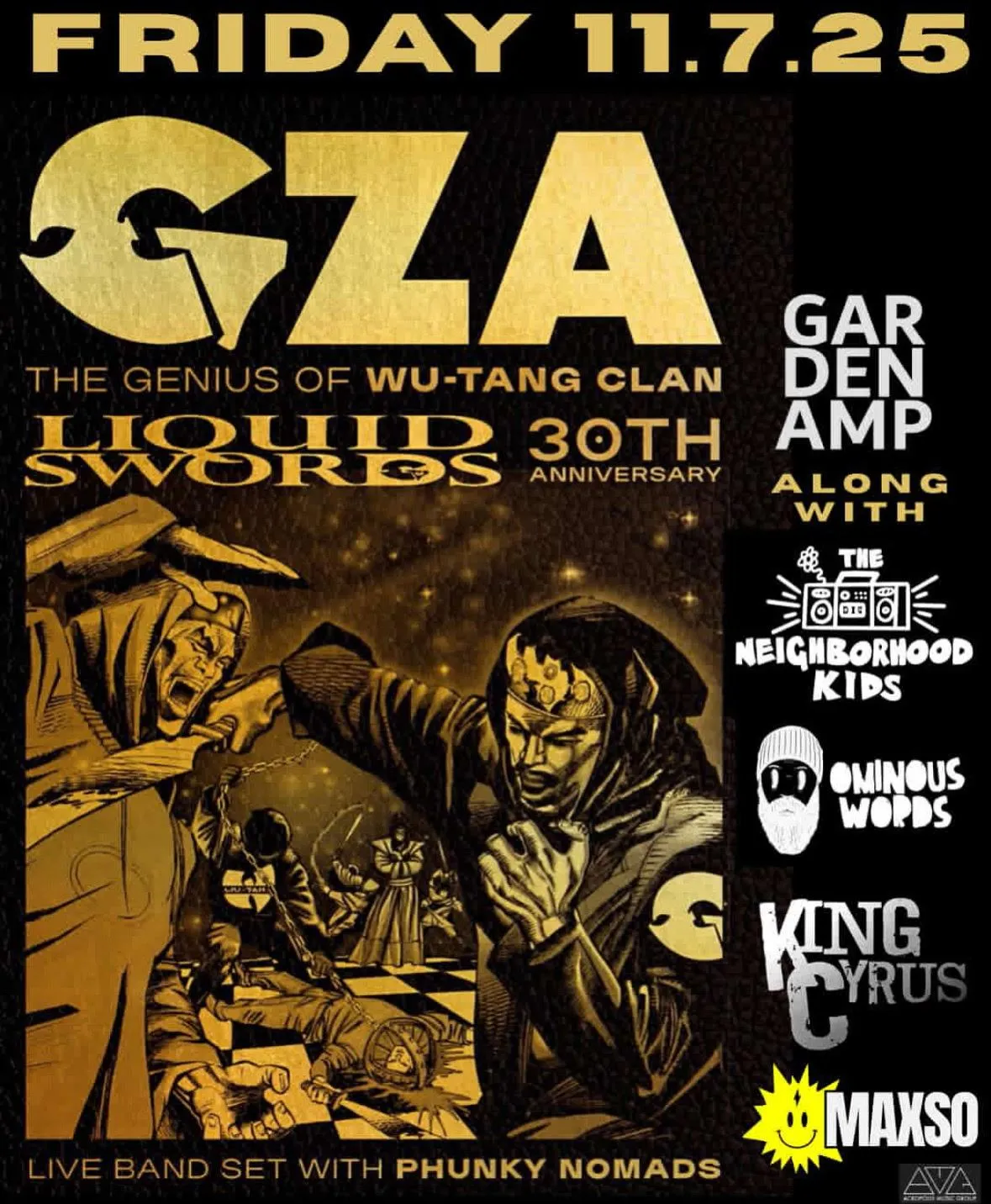 🔥 Don’t miss your chance to witness GZA’s Liquid Swords come alive—bars, beats, and brilliance on one stage.